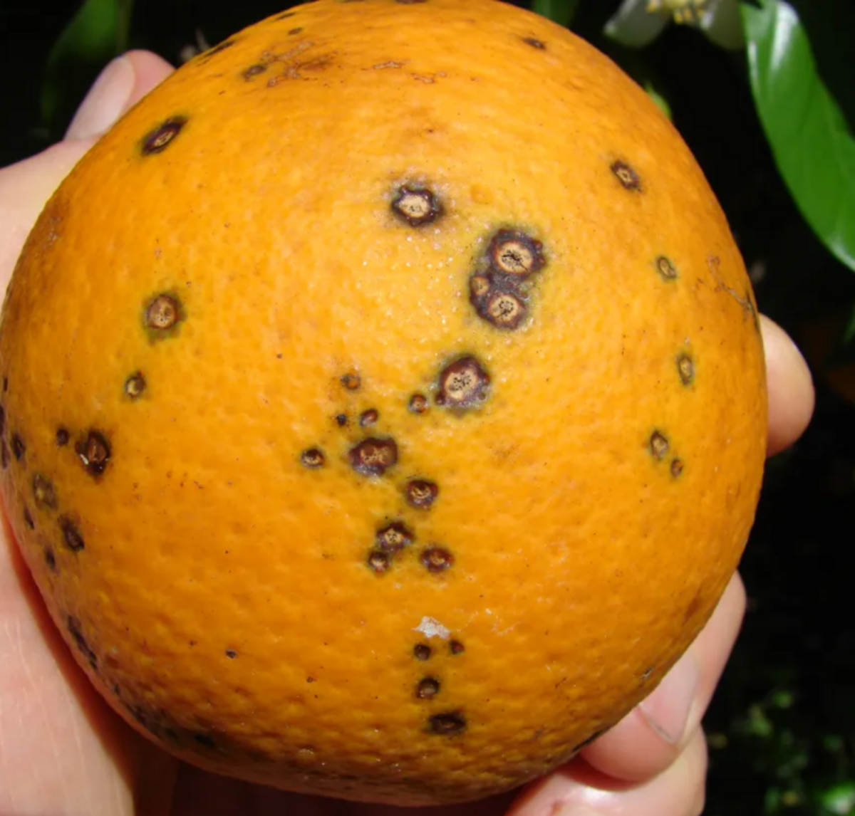 - Citrus Black Spot (CBS) – Caused by the fungus Phyllosticta citricarpa, this disease primarily affects the peels and leaves of citrus plants. Unlike HLB, it does not require an insect carrier and spreads via wind from tree to tree. The fungus remains dormant under the fruit’s skin for several months before symptoms become visible.