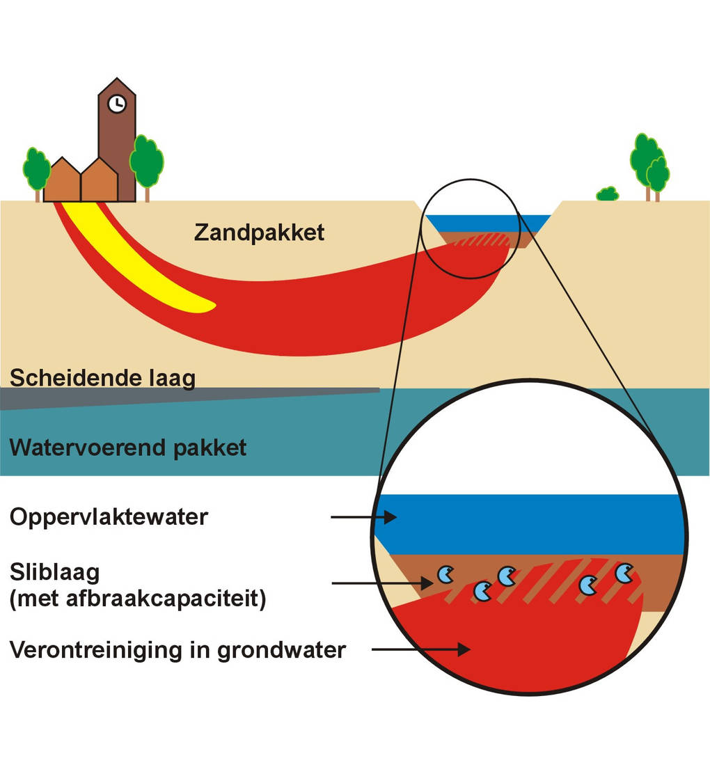 A really good thing is, that when a pollutant rises to the surface water it must first pass through the sediment. This usually consists of a sludge layer, a natural reactor vessel containing a collection of natural processes that do not always occur in the soil or surface water itself. These (biological filtering) processes ensure that seepage of groundwater contamination does not always have to cause problems in the surface water. In fact, when the natural processes in a sludge layer work well and break down the pollution, it is better not to disturb this biological system with active measures. If we take too much action, we will in fact be hindering nature’s hard work.